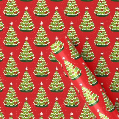 30" 25 sq ft Christmas Roll Wrap Trees on Red - Wondershop™