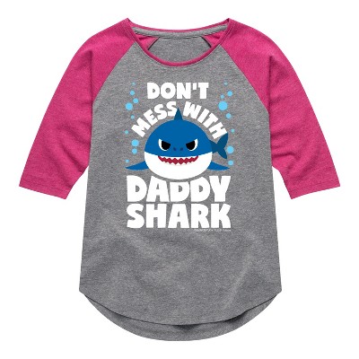 Girls' - Baby Shark - Don't Mess With Dadday Shark Shirt Tail Raglan Graphic T-shirt