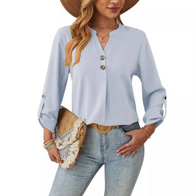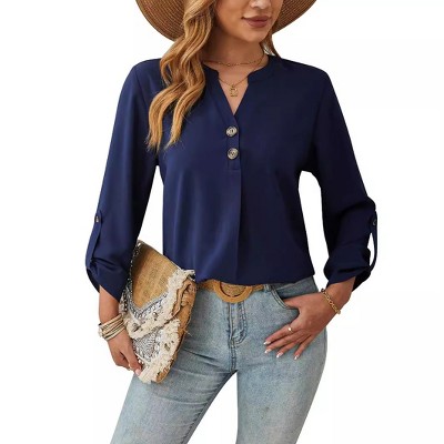 BLUEMING Blouses for Women Dressy Casual Ruffle V Neck Long Sleeve Shirts Trendy Work Womens Tops