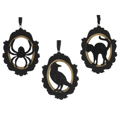 Bethany Lowe 4.25 In Hallows' Eve Cameo Halloween Tree Ornament , Halloween Decor Halloween Spider Crow Cat (3PC)