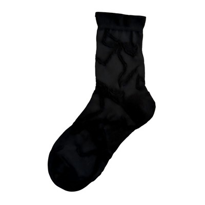 Anna-Kaci Women's 3-Pair Sheer Crew Socks with Textured Bow Pattern Lightweight Mesh Everyday Sock Set - Black