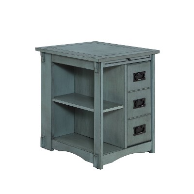 GALAXHERO Slim End Table with Charging Station - Farmhouse Narrow Side Table with Open Storage Shelves for Small Spaces Bedroom/Living Room