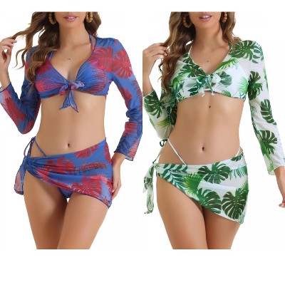 INSPIRE CHIC Women's Dye Halter Tie Triangle Swimsuits with Sarong Cover Ups Beach Skirt Bikini 2 Set