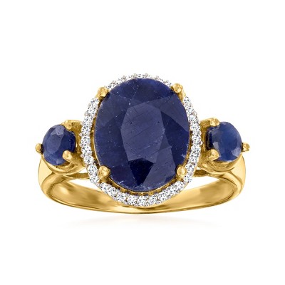 Ross-Simons 4.70 ct. t.w. Sapphire 3-Stone Ring With .14 ct. t.w. Diamonds in 18kt Gold Over Sterling