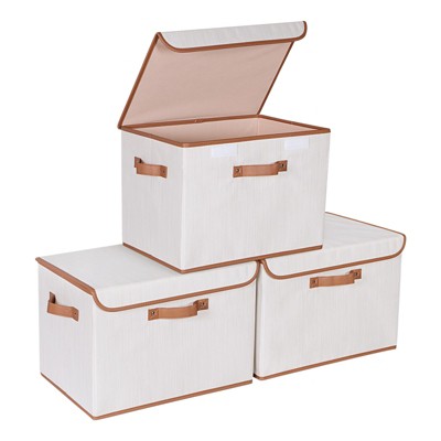 Aoibox Heavy Duty Fabric Storage Bins with Lids 17 Inch 10 Gallon Stackable Decorative Boxes Beige 3 Pack