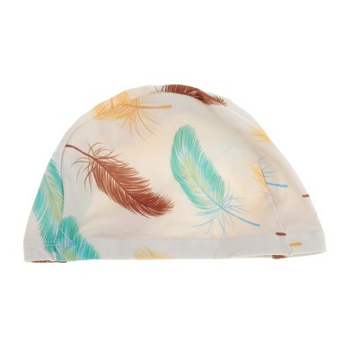 Unique Bargains Nylon Feathers Pattern Swim Cap Beige 1 Pc