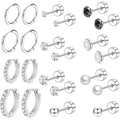 Surgical Steel Earring Set: 20G Hypoallergenic Opal & CZ Studs with Hoops for Sensitive Ears