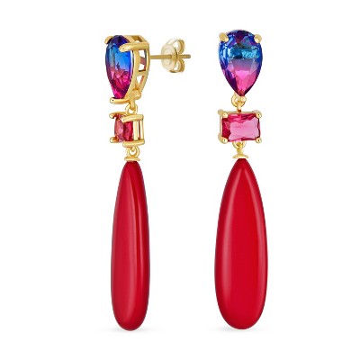 Bling Jewelry Linear Multi Color Chandelier Elongated Long Teardrop Dangling Earrings