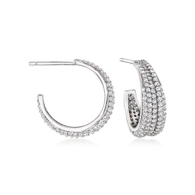Ross-Simons 1.60 ct. t.w. CZ C-Hoop Earrings in Sterling Silver