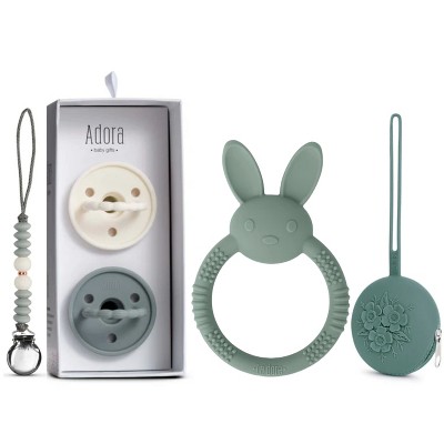 Itzy Ritzy Pacifier - Breathable, 100% Silicone- Dark Gray & Mustard Braids - 2pk