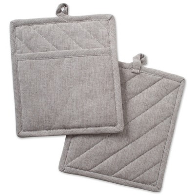 Design Imports Chambray Potholder Set 2 Piece Natural 8X9"