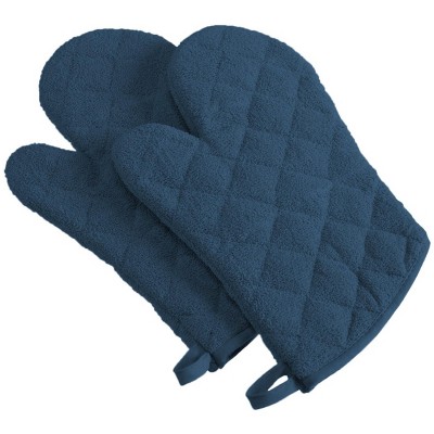 Design Imports Blue Terry Oven Mitt Set/2