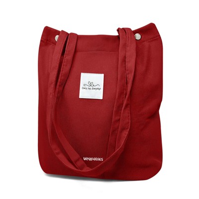 Wrapables Corduroy Tote Bag, Casual Everyday Shoulder Handbag, Red