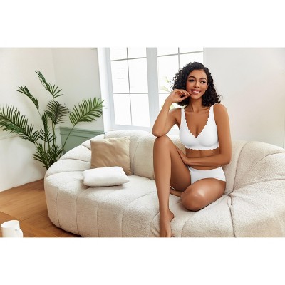 Avidlove Wireless Bra Womens Plunge V Neck Seamless Full Coverage Pushup Bralettes Everyday Bras White XL