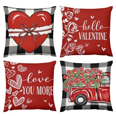 Set of 4 Valentine's Day Pillow Covers 18x18 Inch, Red Buffalo Check Love Heart, Farmhouse Wedding Sofa Couch Decor