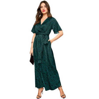 Womens Plus Size V Neck Wrap Maxi Dress High Waist Ruffle Summer Casual Dress with Belt