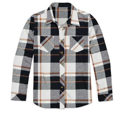INSPIRE CHIC Women's Button Up Peter Pan Collar Long Sleeve Plaid Blouse