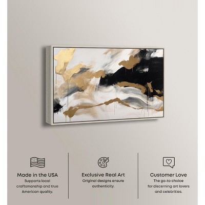Art Remedy Melting Clouds with Gold Black And White Abstract Framed