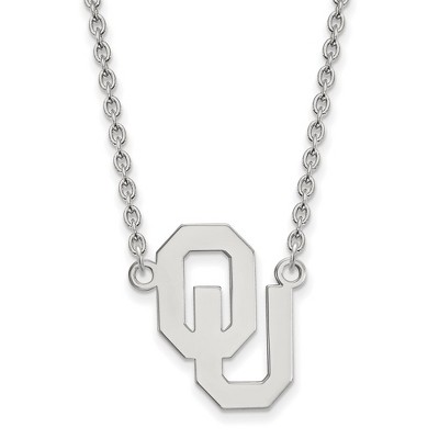 Black Bow Jewelry Sterling Silver Oklahoma Sooners NCAA Large Logo Necklace 18 Inch