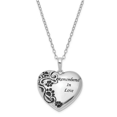 Black Bow Jewelry Sterling Silver Remembered In Love Pet Ash Holder Necklace, 18 Inch