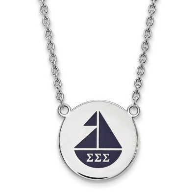 Black Bow Jewelry Sterling Silver Sigma Sigma Sigma Greek Life Large Enameled Disc Necklace 18 Inch