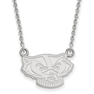Black Bow Jewelry Sterling Silver Wisconsin Badgers NCAA Large Enameled Logo Necklace 18 Inch