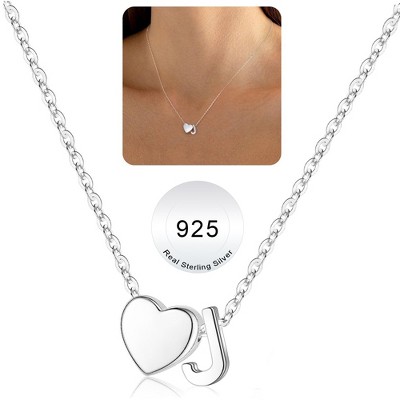 Turandoss S925 Sterling Silver Heart Initial Necklace for Women Girls, Silver Letter Heart Pendant Necklace, Birthday Gifts for Women Girls, 16+3In