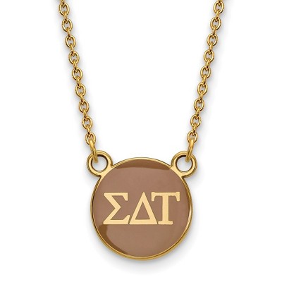 Black Bow Jewelry 14k Yellow Gold Plated Sterling Silver Sigma Delta Tau Greek Life Full Enameled Letters Small Disc Necklace 18 Inch