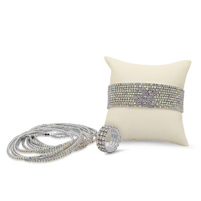 Steeltime Simulated Diamond Multi-Row Stretch Bracelet & Ring Set
