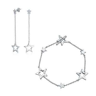 Bling Jewelry Jewelry Set Celestial Stars Rock Star Bracelet and Earrings Silver Toggle Clasp