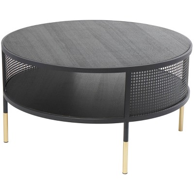 Olivia & May Metal Open Grid Frame 1 Shelf Coffee Table with Gold Legs Black: Modern Drum Style, No Assembly Required