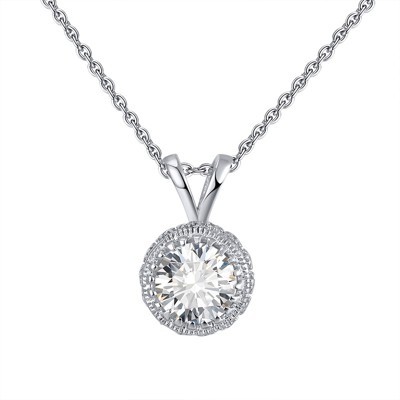 Halo Round Pendant Necklace for Women Sterling Silver Clear Cz Ginger Lyne Collection
