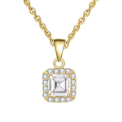 Square Halo Pendant Necklace for Women Rose Gold Sterling Silver Cz Ginger Lyne Collection (Yellow Gold)
