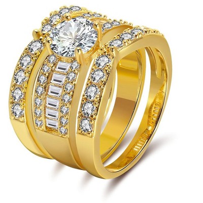 Rose Bridal Set Gold Plate 3pc Engagement Ring Band Womens Ginger Lyne Collection