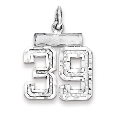 Black Bow Jewelry Sterling Silver, Athletic Collection, Small Polished Number 35 Pendant