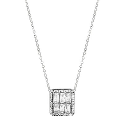 Sterling Silver Cluster Crystal Pendant Necklace