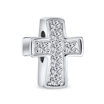 Bella Silver Sterling Silver 9x15mm Micro Pave CZ Cross 18" Pendant Necklace - Small - Silver - SML