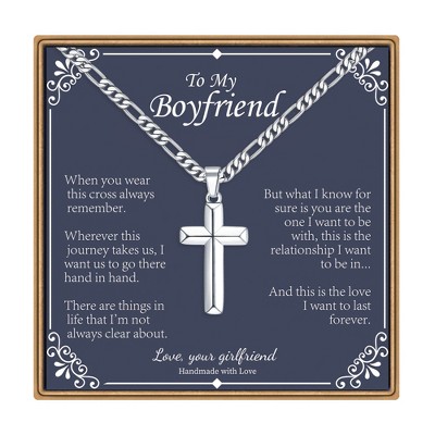 Turandoss Silver Cross Necklace for Men Boys, Stainless Steel Cross Pendant Necklaces, Birthday Gifts for Men, Father, Boyfriend, Boys Fashion Stuff