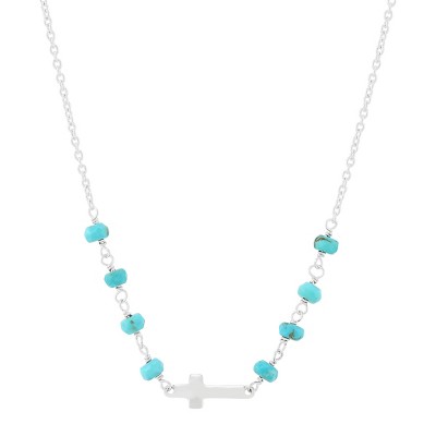 Silpada 'Steady Guide' Sterling Silver Teal Turquoise Cross Necklace, 16" + 2"
