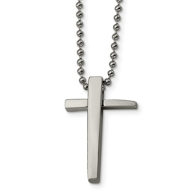 Black Bow Jewelry Stainless Steel Polished Cross Necklace - 22 Inch