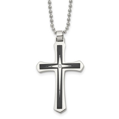 Black Bow Jewelry Stainless Steel Cubic Zirconia Cross Pendant Necklace - 22 Inch
