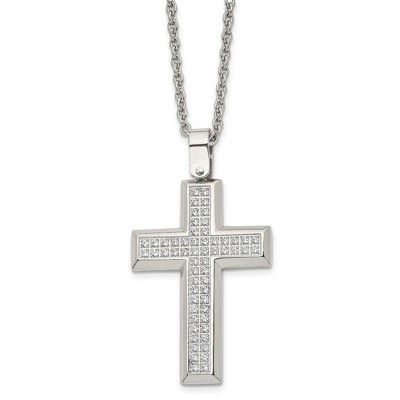 Steeltime 24" Men's stainless steel and simulated diamond cross pendant