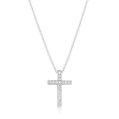 Slickblue Cubic Zirconia Cross Pendant for Women, Rhodium Plated, 15" Chain + 2" Extender, .34 Ct CZ