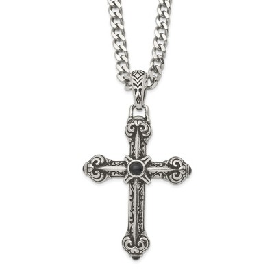 Black Bow Jewelry Stainless Steel Antiqued Ornate Cross Necklace, 22 Inch