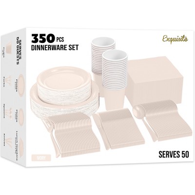 Crown Display 350-Piece Disposable Dinnerware Set – Paper Plates, Paper Cups, Napkins, Plastic Forks, Knives & Spoons – Serves 50 Guests
