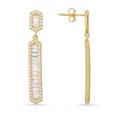 Sterling Silver Dangling Baguette-cut CZ Bar Earrings