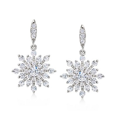 Ross-Simons Italian 2.60 ct. t.w. CZ Snowflake Drop Earrings in Sterling Silver