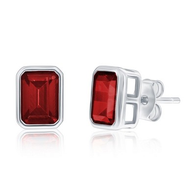 Women's Polished Prong Set Cubic Zirconia Stud Steel Earrings - ELYA