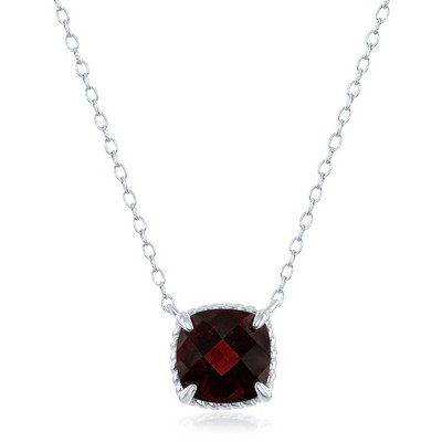 Simona Sterling Silver Four-Prong Square Gem Necklace - Garnet - Red - 16+2 Inch