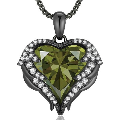 Bella Silver Sterling Silver 11mm Emerald Heart Crystal Necklace - Gold Plated - Green - 16+2 Inch